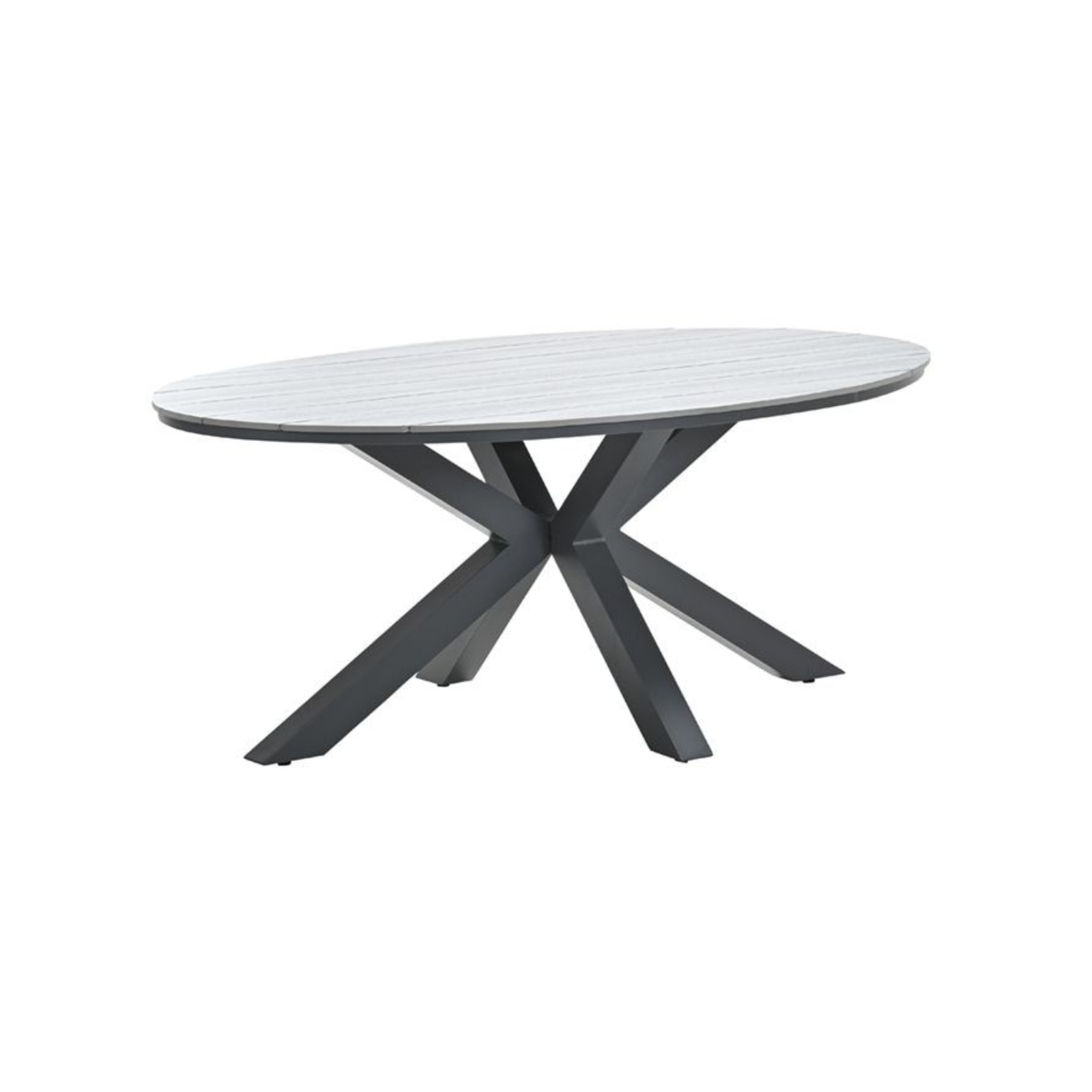 • Ovale tuintafel van 180 x 115 cm, geschikt voor 4 tot 6 personen.