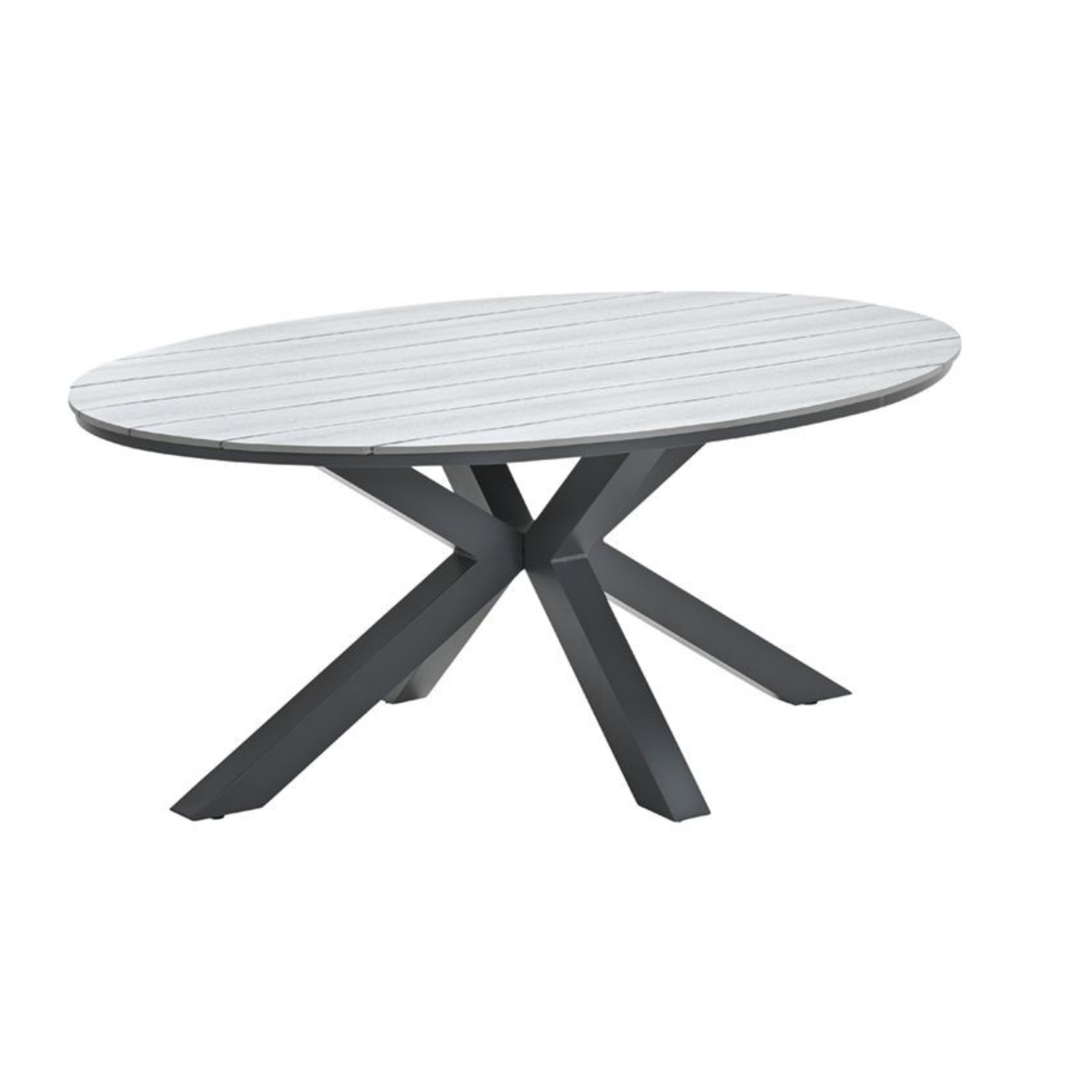 De Edison tuintafel ovaal – 180 x 115 cm – is een stijlvolle en robuuste tuintafel met aluminium frame in carbon black en een grey teak Vironwood blad. Onderhoudsarm, weerbestendig en geschikt voor 4 tot 6 personen.