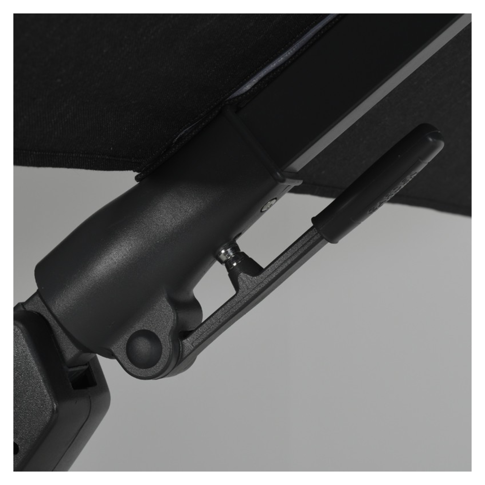Het zwarte doek is vervaardigd uit 250 g/m² solution dyed polyester met PA-coating: kleurvast, waterafstotend en uv-bestendig.