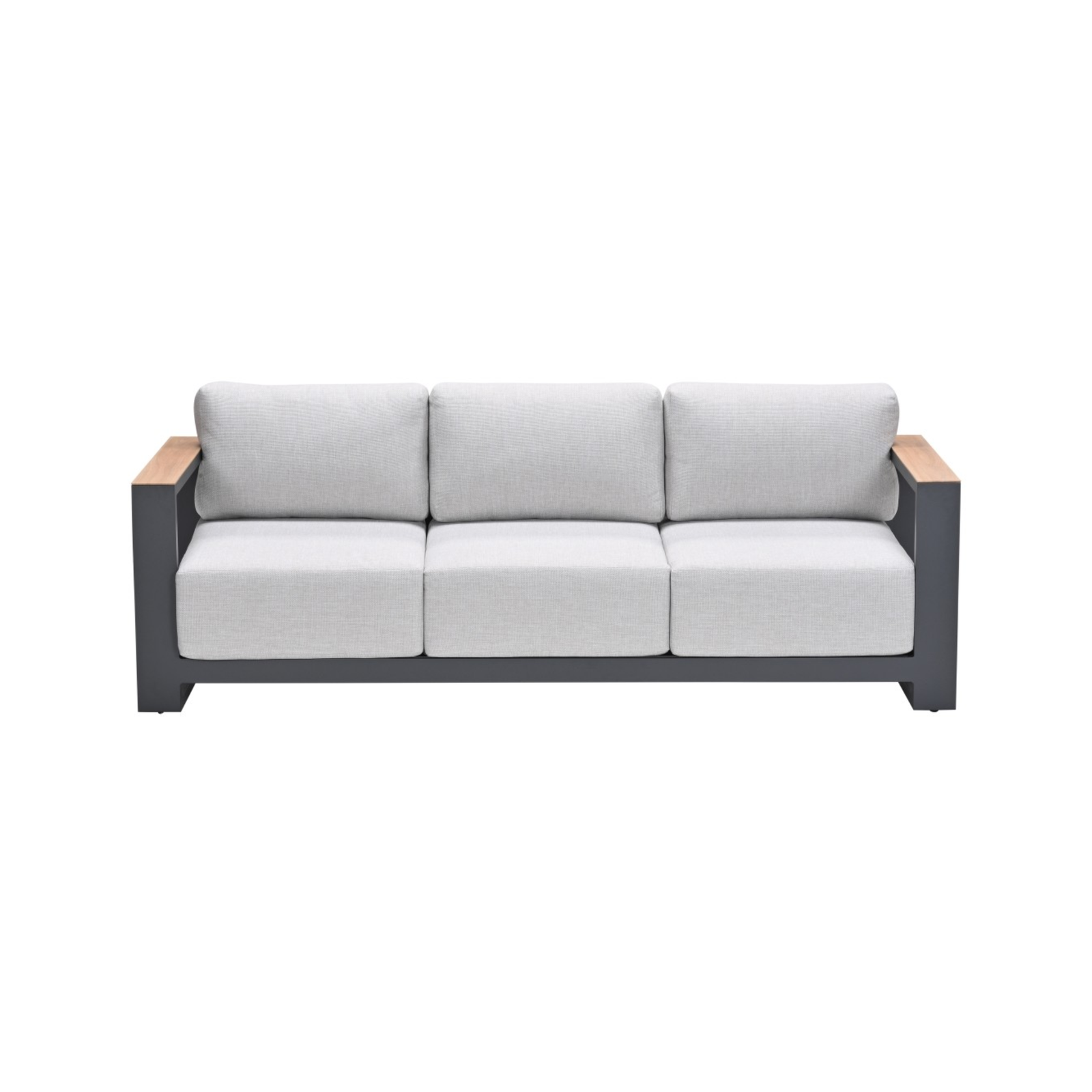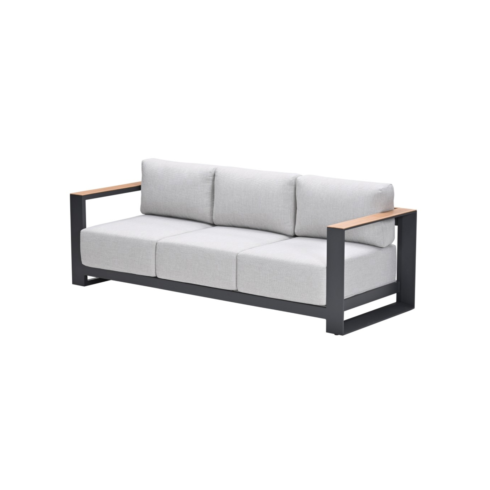De Levanto driezits loungebank – carbon black – valley sand light teaklook is een stijlvolle, comfortabele loungebank met aluminium frame, warme houtlook accenten en royale kussens. Perfect voor wie zoekt naar luxe, comfort en onderhoudsgemak in de tuin.