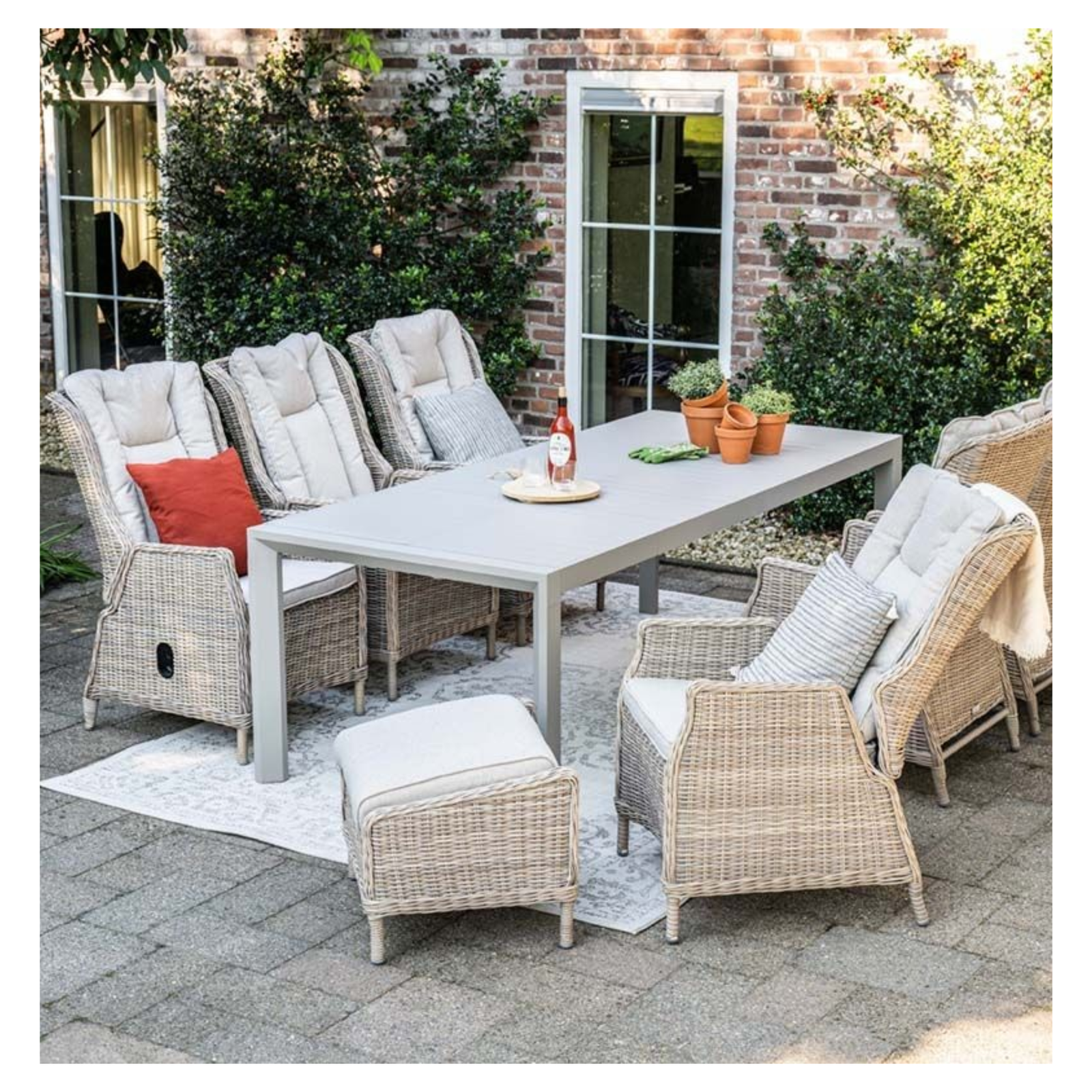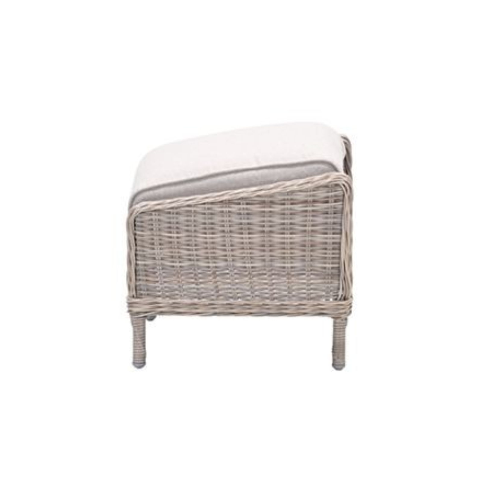 De Osborne voetenbank – vintage willow – valley sand is de ideale aanvulling op je Osborne loungestoel. Gemaakt van een stevig aluminium frame met duurzaam, handgevlochten wicker en geleverd met een comfortabel kussen met water- en vuilafstotende hoes. Perfect voor extra comfort en stijl in je tuin!