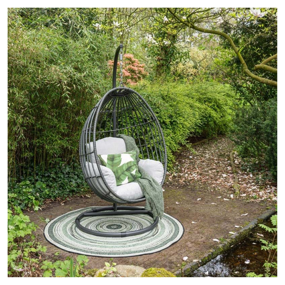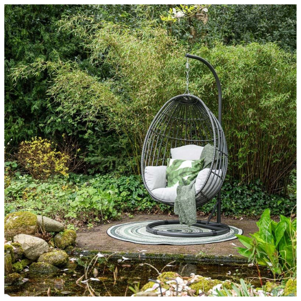 Panama hangstoel met standaard – eivorm – carbon black – earl grey – valley sand