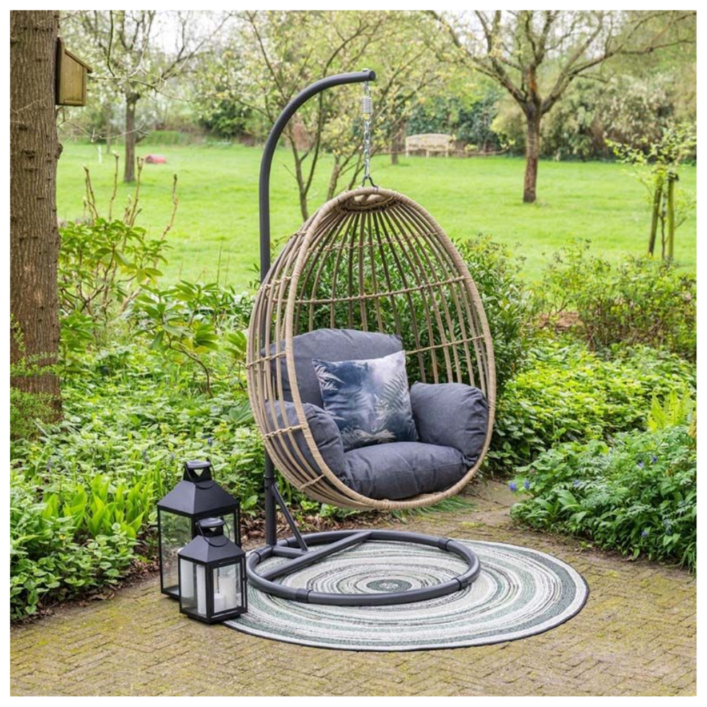 Ervaar ultieme ontspanning in je tuin of op je balkon met de Panama hangstoel met standaard van Garden Impressions. Deze stijlvolle en comfortabele hangstoel in eivorm is een echte eyecatcher en biedt het perfecte plekje om te loungen, lezen of gewoon heerlijk tot rust te komen. Met zijn natuurlijke rotan uitstraling, stevige constructie en luxe zitkussen in mystic grey, combineert deze stoel design en comfort op topniveau.