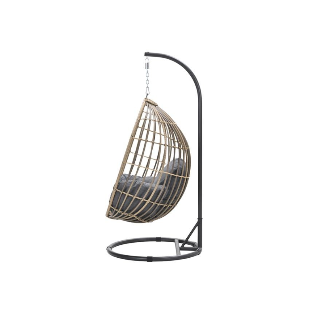 Panama hangstoel met standaard – eivorm – carbon black – natural rotan – mystic grey
