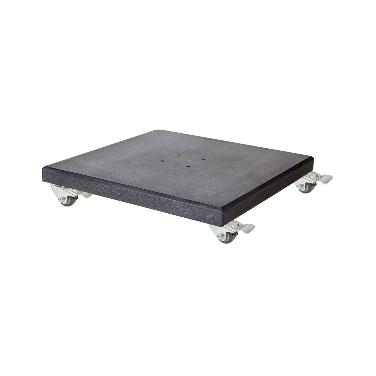 Platinum Sun & Shade parasolvoet voor zweefparasols Modena 120kg. Zwart gepolijst graniet. Zwaar, daardoor stabiel. Makkelijk verplaatsbaar door extra grote XL zwenkwielen.