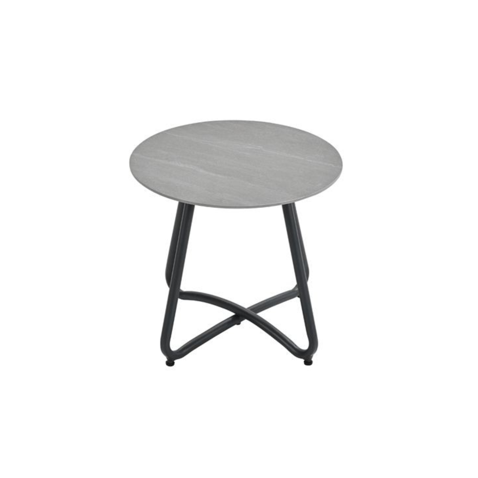 De Vento bijzettafel Ø45xH41 cm is een compacte, stijlvolle bijzettafel met een carbon black aluminium frame en een zandkleurig Centostone® blad. Ideaal voor buiten, weerbestendig en gemakkelijk in onderhoud.